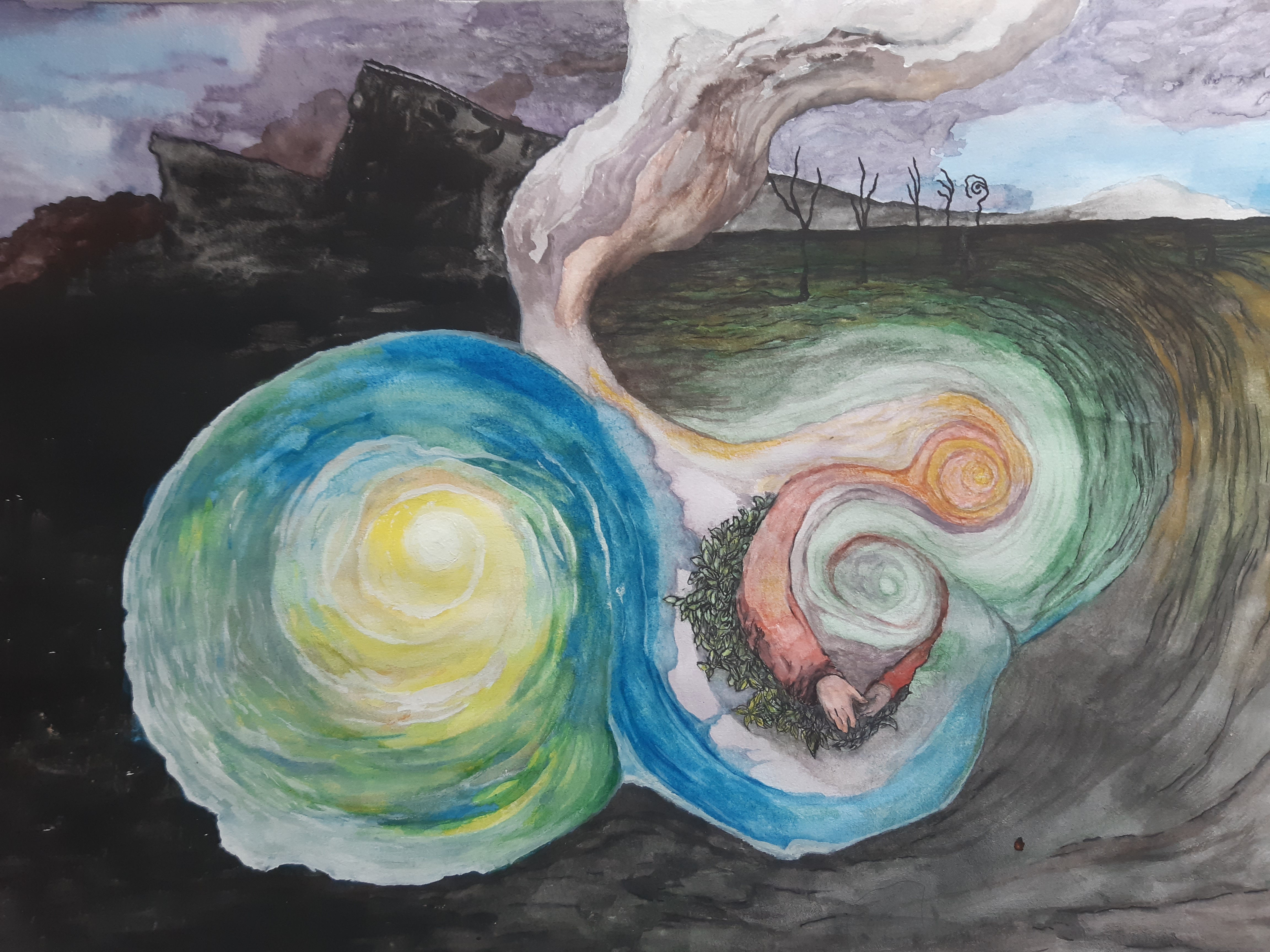 My work has spoken about reality and existance, dissociation and trauma, nature and religion. In addition to my previous paintings, I am currently working on projects in duodji, coding and natural sculptures.